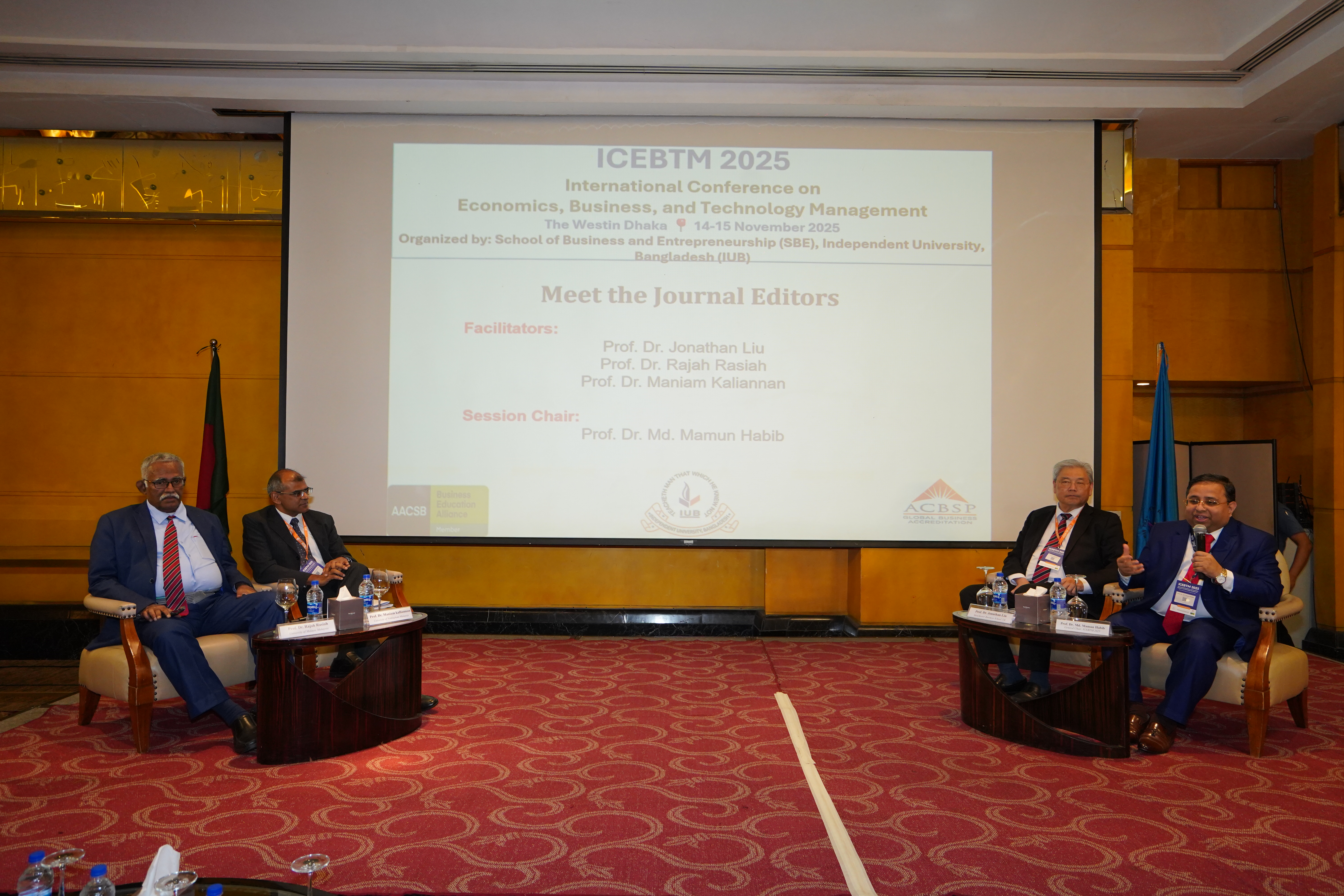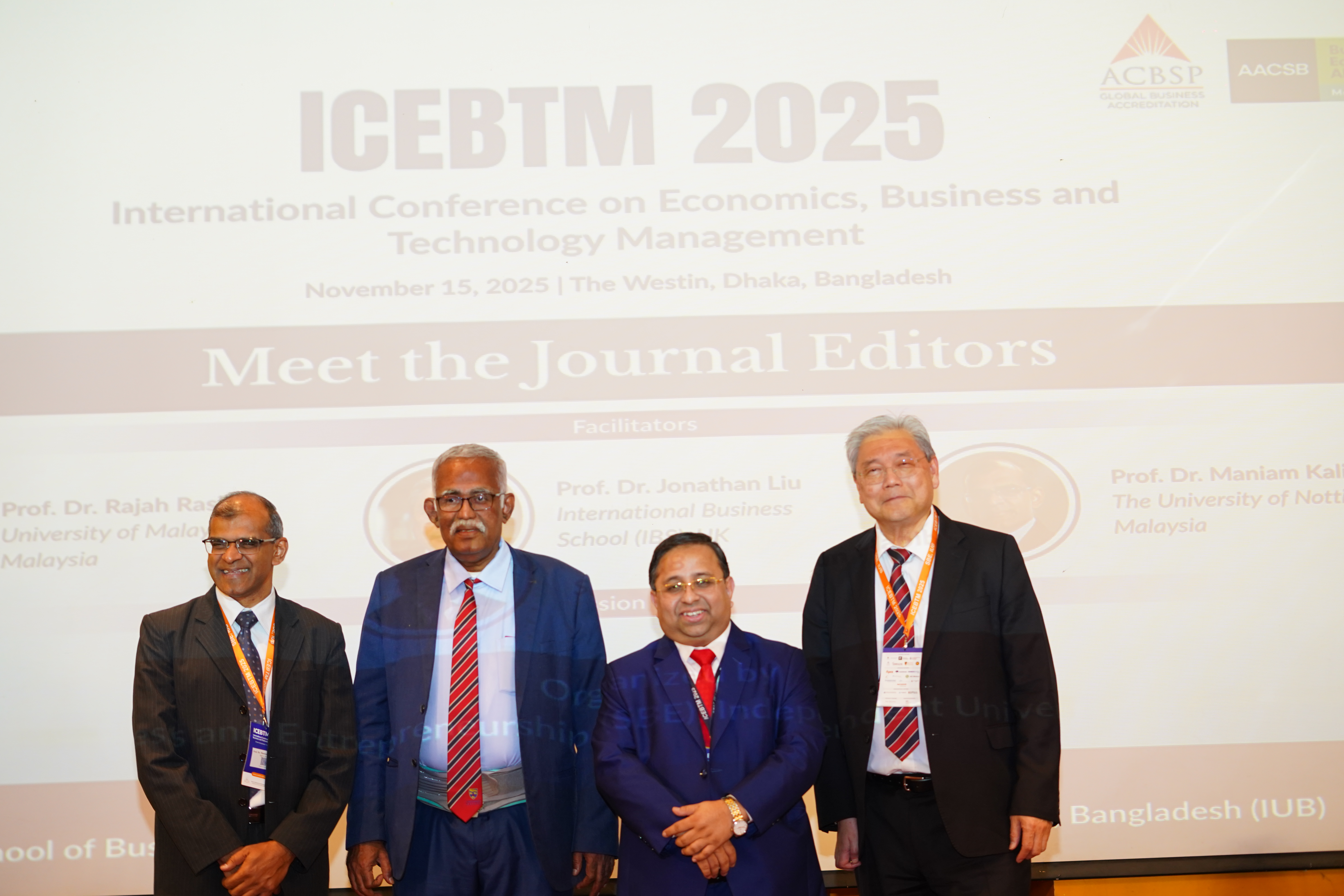 The “Meet the Journal Editors” session at ICEBTM 2025 provided an exceptional platform for participants to engage with leading journal editors and gain insights into academic publishing. The session, chaired by Prof. Dr. Md. Mamun Habib, featured prominent editors Prof. Dr. Jonathan Liu, Prof. Dr. Maniam Kaliannan, and Prof. Dr. Rajah Rasiah.